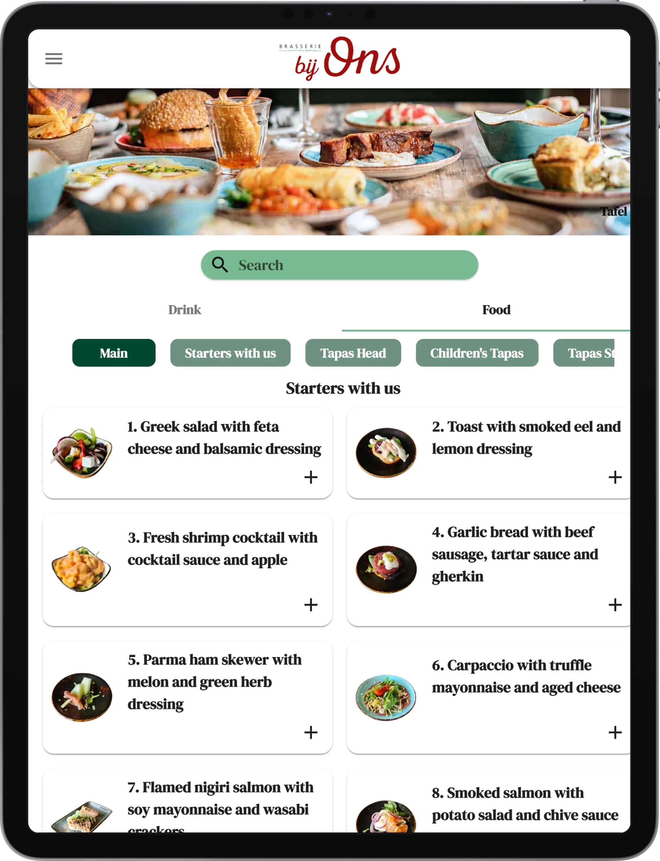 Brasserie bij Ons transforms their table service with Jamezz Tablet Ordering. Service staff take orders quickly and accurately via tablets, streamlining communication with the kitchen. Through direct order confirmation at the table, guests feel better heard, while staff have more time for personal attention and recommendations. This results in 22% faster service and significantly fewer ordering errors.